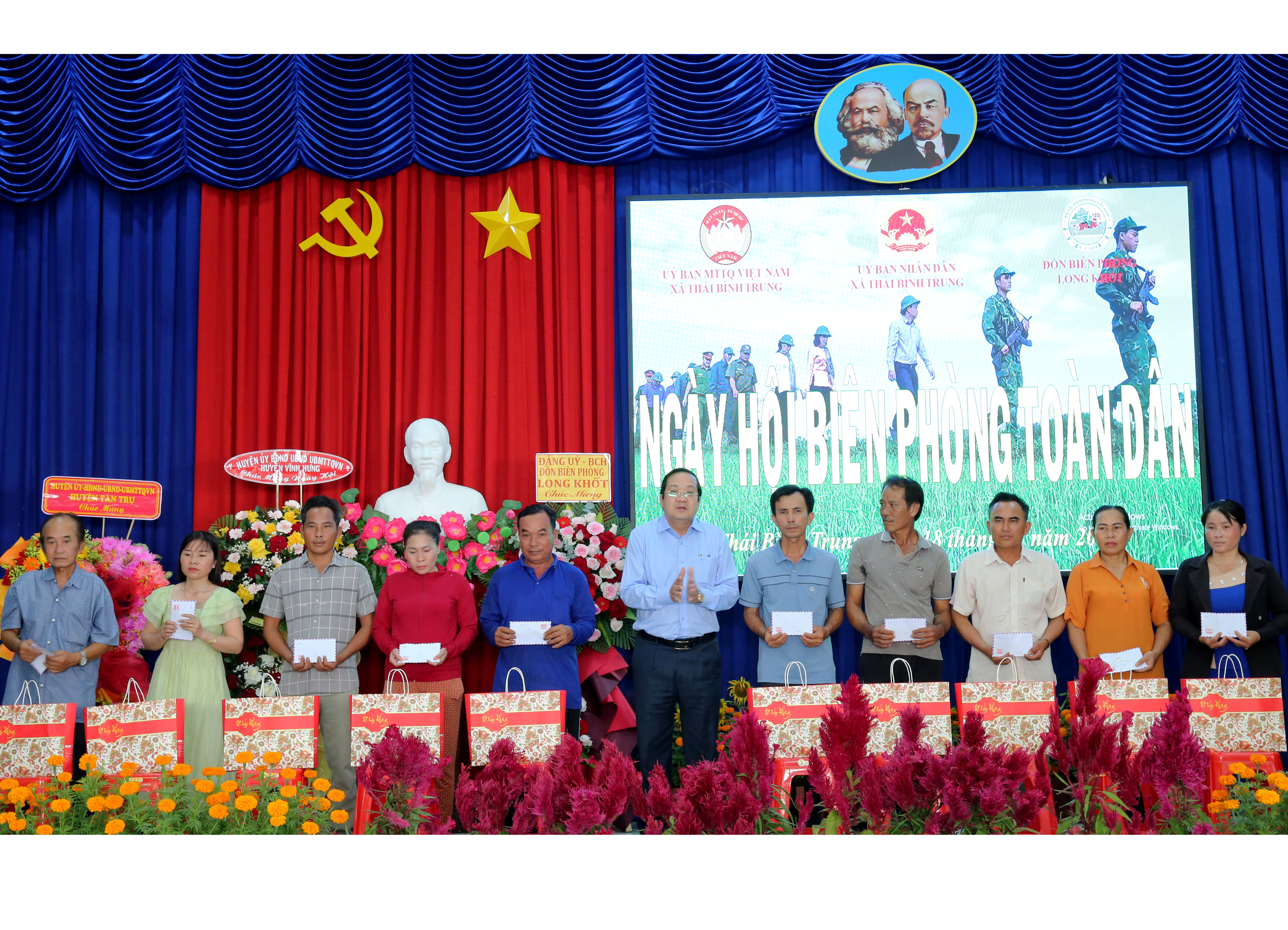 Dự ngày hội có Ủy viên Ban Thường vụ Tỉnh ủy, Phó Chủ tịch UBND tỉnh - Nguyễn Minh Lâm, Tỉnh ủy viên, Chủ tịch UBMTTQ Việt Nam tỉnh - Nguyễn Thị Thu Trinh, Đại tá Dương Văn Dược - Chính ủy Bộ Chỉ huy Bộ đội Biên phòng tỉnh; đại diện lãnh đạo các sở, ngành tỉnh, các huyện, thị xã biên giới, các đồn Biên phòng, Tiểu đoàn Huấn luyện – Cơ động, lãnh đạo huyện Vĩnh Hưng, xã Thái Bình Trung và đông đảo nhân dân biên giới xã Thái Bình Trung cùng tham dự.
