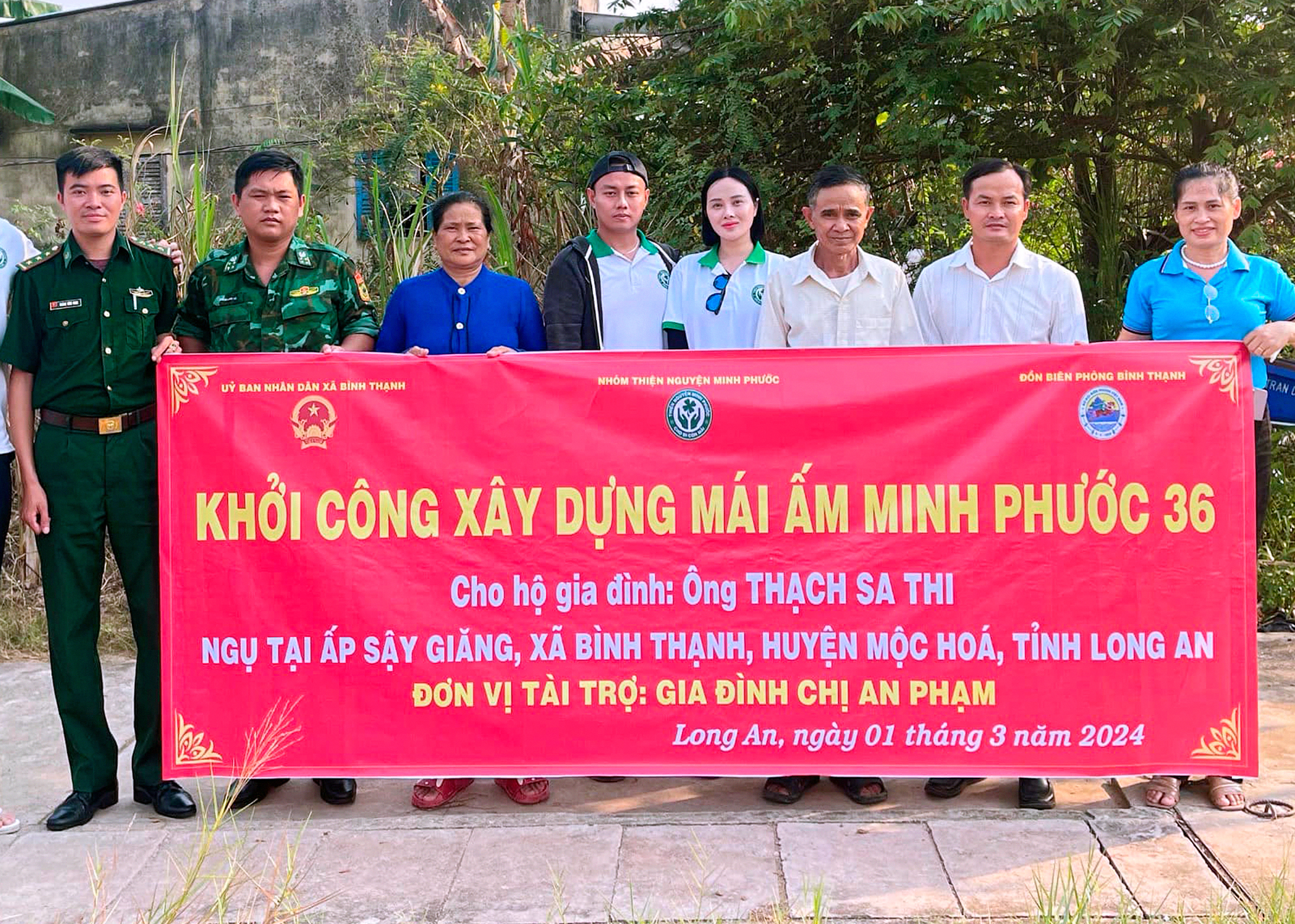 Được biết, gia đình ông Thạch Sa Thi, trú tại ấp Sậy Giăng, xã Bình Thạnh, huyện Mộc Hóa thuộc diện hộ nghèo, có hoàn cảnh đặc biệt khó khăn về nhà ở, bản thân ông là lao động chính, thường xuyên ốm đau, bệnh tật, không nghề nghiệp ổn định, kinh tế chủ yếu dựa vào đồng tiền ít ỏi từ việc làm thuê, gia đình ông có hai người con bị bệnh từ nhiều năm nay. Trước hoàn cảnh khó khăn của gia đình ông Thạch Sa Thi, Đồn Biên phòng Bình Thạnh và UBND xã Bình Thạnh kiến nghị UBND huyện Mộc Hoá hỗ trợ đất nền nhà cụm dân cư trung tâm xã Bình Thạnh. Đồn Biên phòng Bình Thạnh đã vận động nhóm Thiện nguyện Minh Phước tại thành phố Hồ Chí Minh hỗ trợ kinh phí 80 triệu đồng để xây dựng nhà ở. Trong quá trình khởi công xây dựng Đồn Biên phòng Bình Thạnh cử cán bộ, chiến sĩ phối hợp các đoàn thể ở địa phương hỗ trợ ngày công lao động.